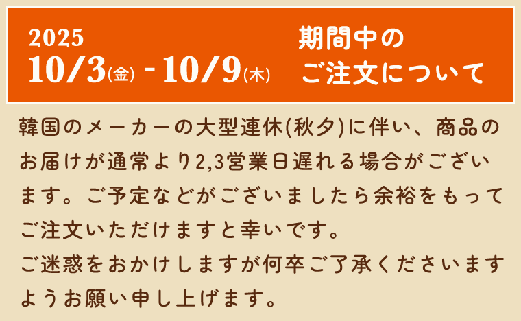 - 【2025年10月3日(金)〜9日(木)期間中のご注文について】